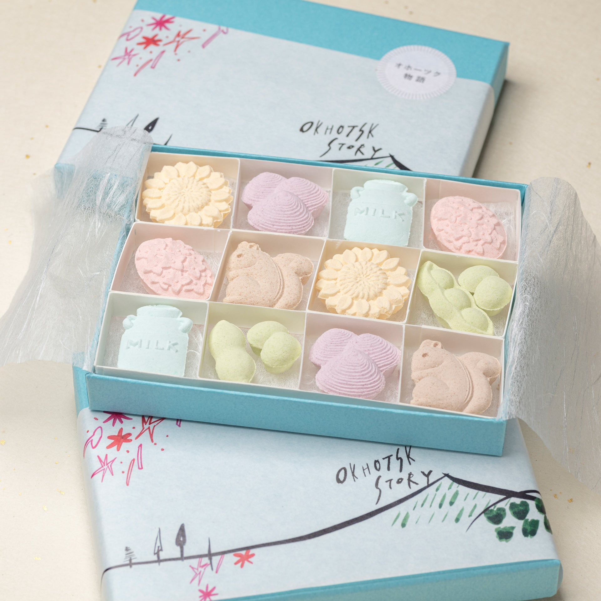 オホーツクの風物を和三盆糖で可愛らしく型取りました。